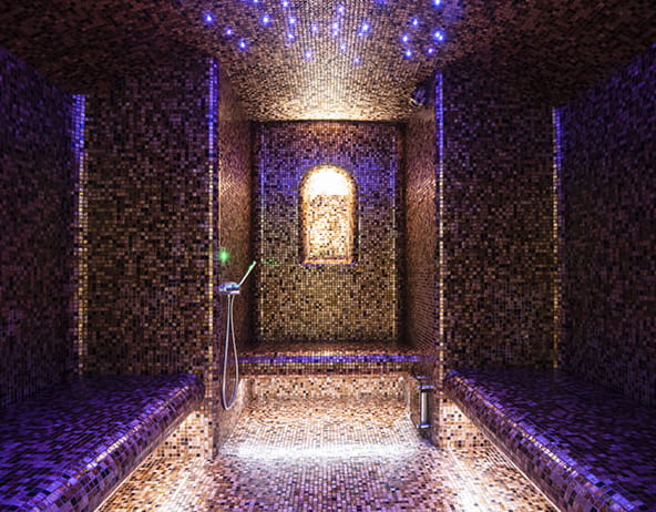 An enclosed and usually tiled room, filled with visible steam, typically maintained with up to 100% humidity and temperatures ranging from 40 – 50 degrees Celsius. Known to improve circulation, skin health, provide muscle and joint pain relief as well as relaxation and mindfulness.